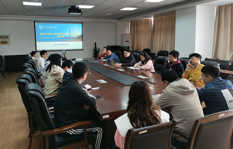 4月16日上午,通信与信息工程学院在三牌楼校区科研楼208会议室召开了2021届研究生毕业座谈会,出席会议的有学院党委副书记、副院长葛敏老师,院党委委员、专职纪检委员朱鹏飞老师,2018级研究生辅导员余琪老师以及15位2021届的毕业研究生代表。