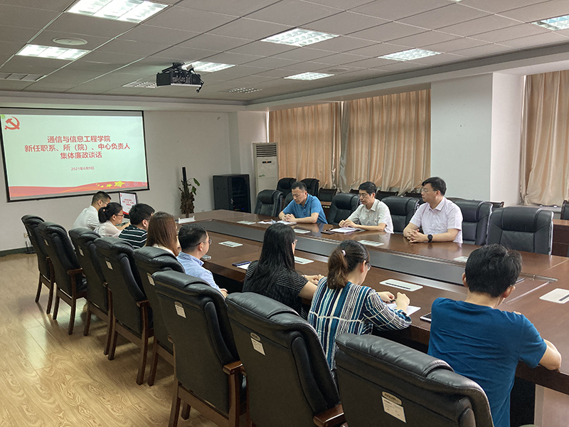 6月9日,通信与信息工程学院开展新任系、所(院)、中心负责人集体廉政谈话。通信与信息工程学院党委书记徐雷、院长周亮、专职纪检委员朱鹏飞与新任系、所(院)、中心负责人参加谈话会。谈话会由学院党委书记徐雷主持。