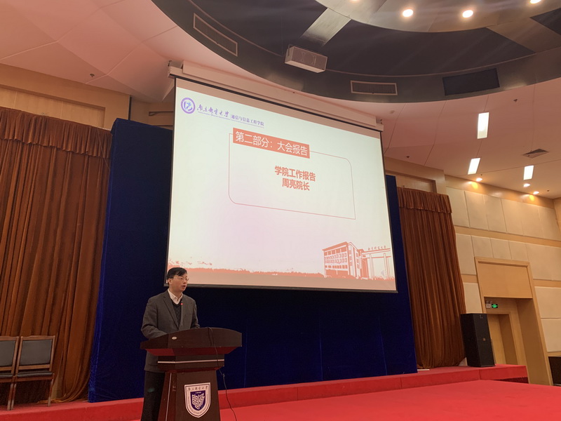 学院院长周亮向大会作学院2021年工作报告,并解读了《通信与信息工程学院教职工绩效考核暂行实施细则》。学院副书记葛敏向大会作2021年工会工作报告。