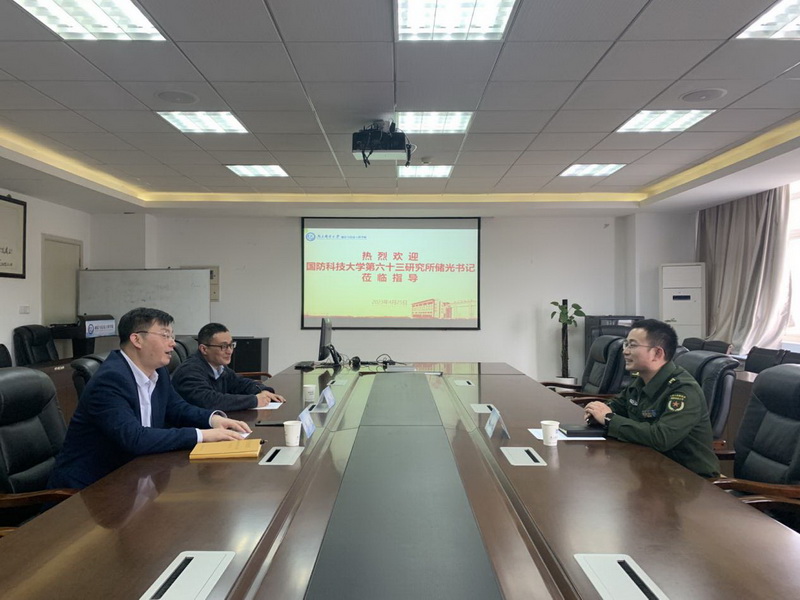 4月25日下午,国防科技大学第六十三研究所电磁频谱研究中心储光书记到我院交流。我院院长周亮、副院长田峰参加了交流活动。