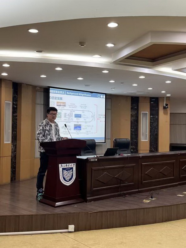 首先,孙铭烁博士以“设备缺陷在量子密码领域的研究”为主题,为大家介绍了课题的背景意义、研究思路、关键技术等相关知识。在谈到自己的专业时,他非常自豪地说,深处科技革命和产业变革深度演进的大科学时代,能够从事量子计算与量子密码如此前沿的研究,既是个人的理想所在,也是科技报国的责任所在。在与大家互动交流的提问环节时他提到,科研的过程就是不断向“无人区”进军的过程,需要始终保持科学研究的耐心、恒心、信心与初心。