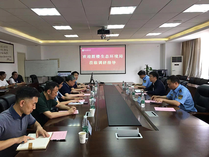 汪校长代表学校对汤峻局长一行表示热烈欢迎,并介绍了学校的整体情况、发展历程。汤局长向学校介绍了鼓楼生态环境局的情况,强调了环境保护工作的重要意义,以及高校在生态环境保护工作中普遍存在的问题。沈清明处长汇报了三牌楼校区危废库改造工作。
