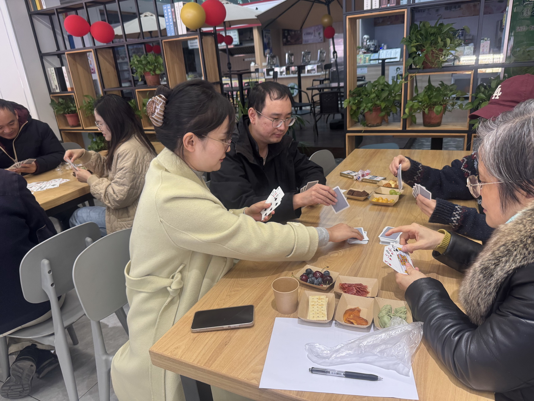 学院精心筹备,为参赛选手准备了丰富的水果、点心和饮料,让大家在紧张比拼之余,能及时补充能量,感受贴心关怀。线下赛场氛围热烈,象棋、五子棋和掼蛋比赛同步开展。参赛教职工们专注凝神,在棋盘上排兵布阵、斗智斗勇,每一步落子都尽显策略与思考;掼蛋桌前,搭档间默契配合,时而低声研讨战术,时而果断出牌,现场欢声笑语不断。线上赛场同样精彩纷呈,王者荣耀比赛中,教职工队伍凭借精湛操作和默契团战展开激烈角逐,直播间内互动频繁,气氛持续高涨。