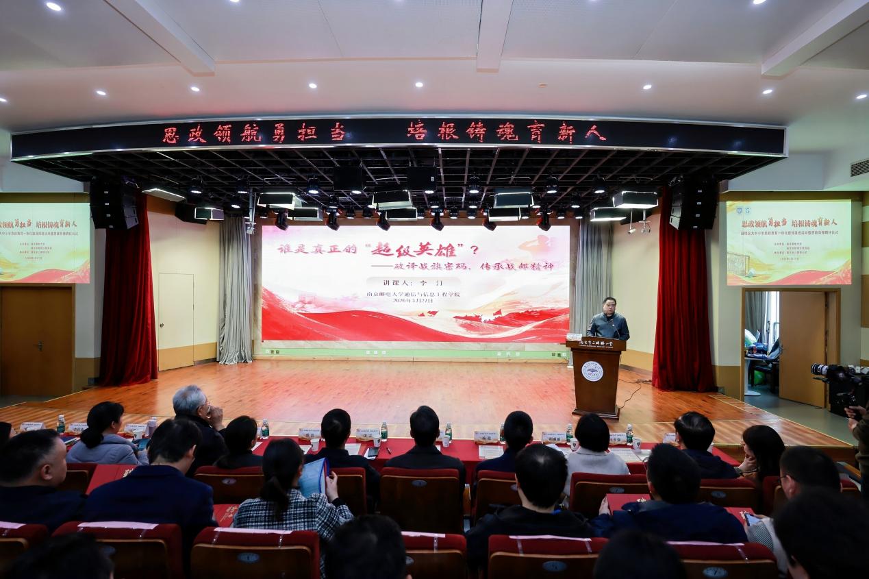 “全国党建工作样板支部”南京邮电大学通信与信息工程学院信息工程系党支部书记、副主任,教育部首批全国高校“双带头人”教师党支部书记“强国行”专项行动团队负责人李汀,以《谁是真正的“超级英雄”——破译战旗密码,传承战邮精神》为题讲授思政微课,以红色故事联通历史与现实,厚植家国情怀,为现场师生带来深刻的精神洗礼。