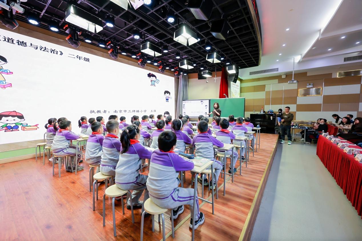 南京市三牌楼小学在活动现场带来生动精彩的道德与法治展示课《我是班级值日生》与情景剧《小小担当者》,展现了义务教育阶段的思政育人实效。