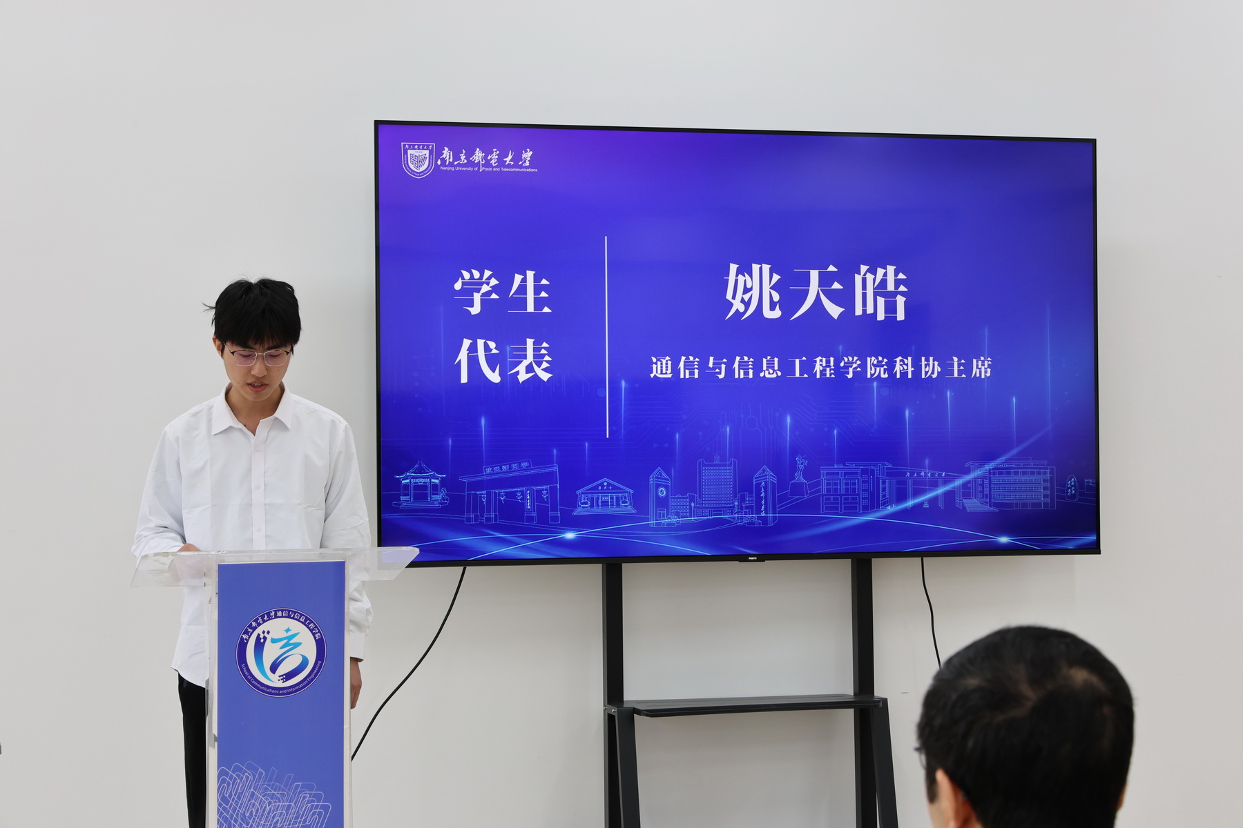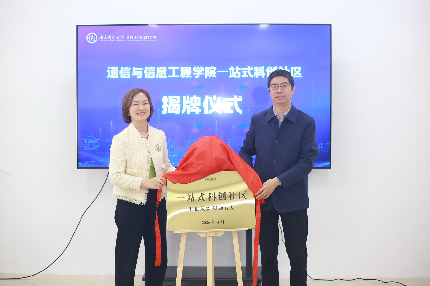 4月20日,南京邮电大学通信与信息工程学院“一站式科创社区”在仙林校区正式揭牌启用。这一创新平台的落成,不仅是学校深化“一站式学生社区”建设的标志性成果,更是学院推动科创育人模式系统性变革、响应国家科技自立自强战略的关键举措,开启了科创育人从“活动化”向“生态化”转型的新篇章。学校党委常委、副校长姜小舜,对外联络处处长盛利、校团委书记秦昌建、党委学生工作处副处长段惠方等职能部门负责人,南京艾瑞智赢信息技术有限公司董事长杨利霞、总经理徐彬等企业代表,通信与信息工程学院领导班子、全体辅导员、科创指导教师代表及学院科协全体成员出席仪式。